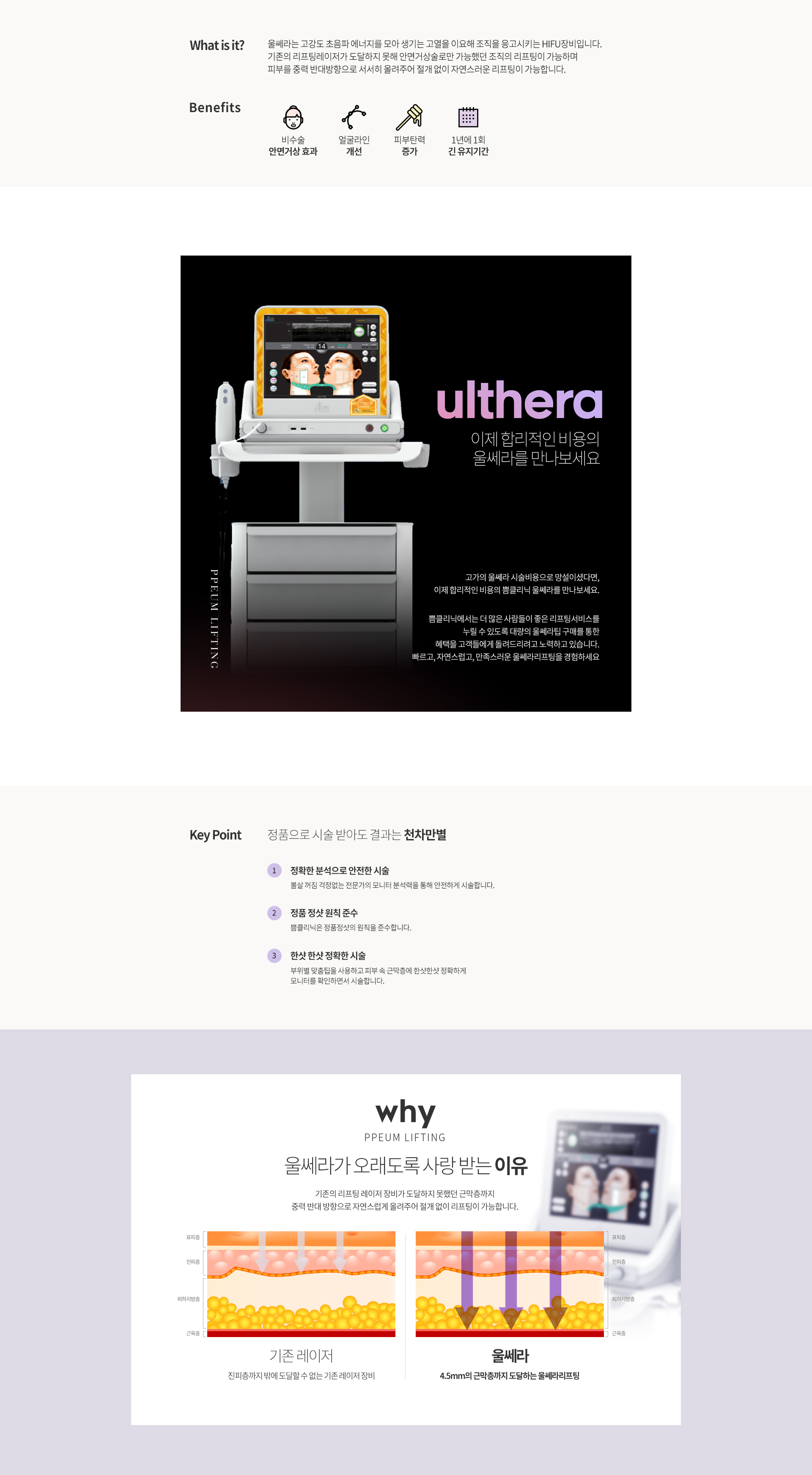 발산쁨클리닉만의 프리미엄 울쎄리프팅. 정품,정량으로 확실한 효과를 보여줍니다.